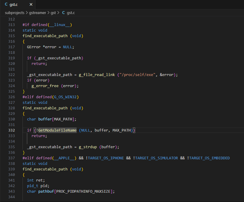 The framework (GStreamer Core and its libraries) and its plugins are mostly written in C, with a small percentage of them using C++ or Objective-C internally. Rust is becoming very popular among GStreamer developers, and most of the new plugins are now written in Rust. The GStreamer code base is quite big, exposing a large API that can be hard to remember and navigate. This is where a good IDE can help during the development process with programmatic language features such as inline hints, jump to definition, hover information, error checking, and so on…