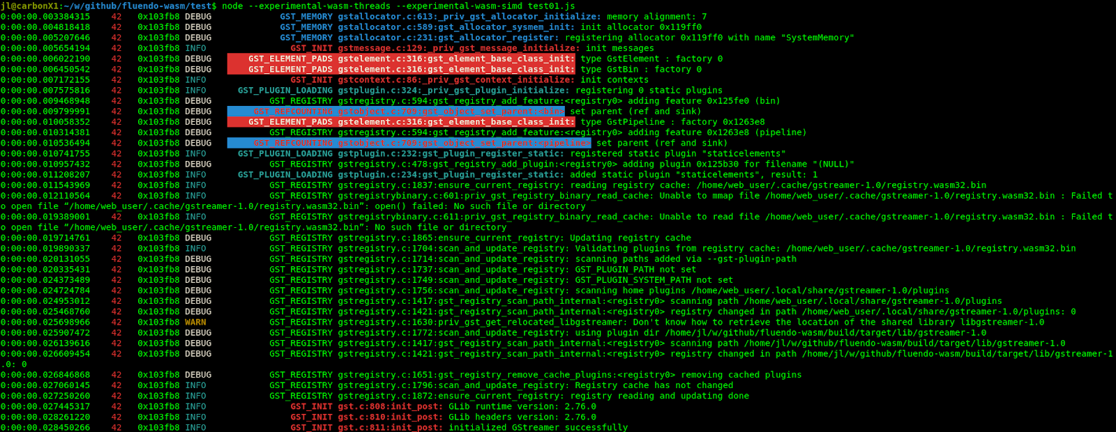 So, at this moment, we have a static build of GStreamer, plus the core plugins. The browser can load our stack and run a dummy pipeline … and … we have the GStreamer logs in a browser console!