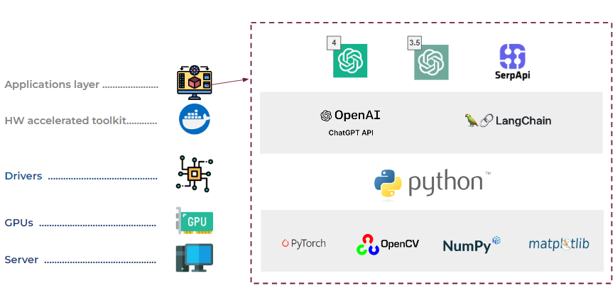We designed our API development with efficiency and adaptability in mind, and this image underscores our strategy. Using NVIDIA GPUs, we’ve ensured reliable performance without unnecessary complexity. Docker represents our practical approach to ensuring consistent operations, and with CUDA, we’ve streamlined processes for better speed. The variety of software tools, from natural language processing to machine learning and visual recognition, indicates our goal: to build versatile and effective digital solutions without the pomp and fanfare.