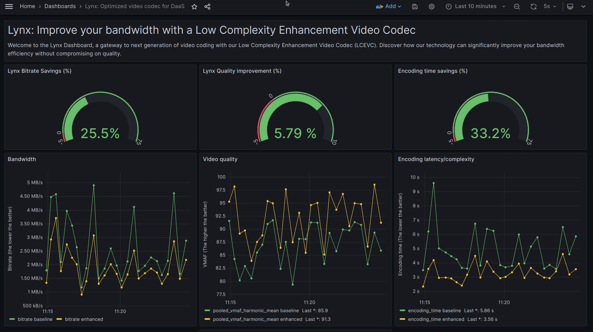 - KPIs Collection: records vital data, including bitrate and encoding duration. Videos are encoded using standard H.264 and enhanced with LCEVC.